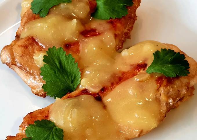 - Für die Soße geben wir die Zwiebeln mit ein bisschen Öl in eine Pfanne und braten alles an, danach die Hühnerbrühe, Wein, Salz und Senf dazugeben, alles gut verrühren und kochen lassen. Danach geben wir die Maisstärke dazu (vorher in etwas kaltem Wasser aufgelöst), mischen nochmal gut, dann noch ein paar Minuten kochen lassen und mit den Hähnchenbrustfilets servieren und genießen..
