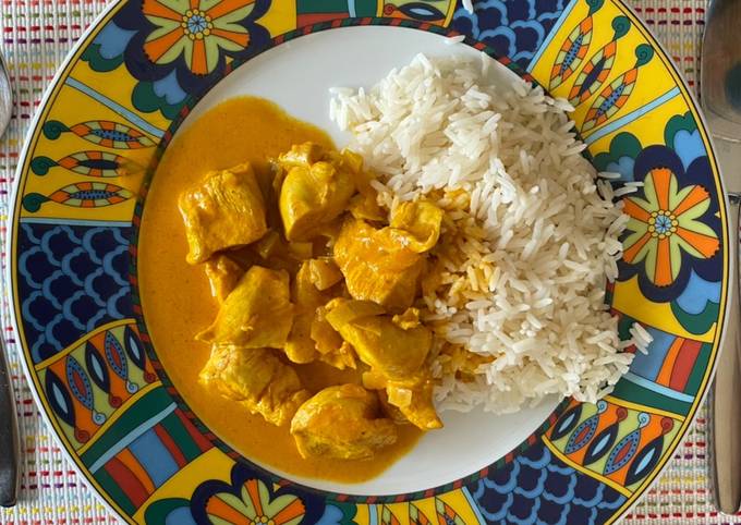 - Nun kann das Chicken Curry zusammen mit Reis serviert werden..